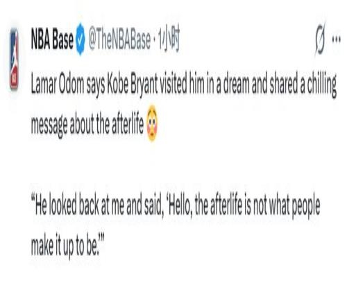 值得一提的是在2022年,也就是4年前,奥多姆曾提到自己梦到科比。当时奥多姆在节目中告诉体育评论员夏普,这位NBA传奇的灵魂至少四次在梦中出现。